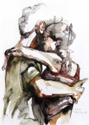 Evelyn Schmidt Tangopaar Nr. 18 Postkarte DIN A 6, Mischtechnuk auf Aquarellpapier, 2019